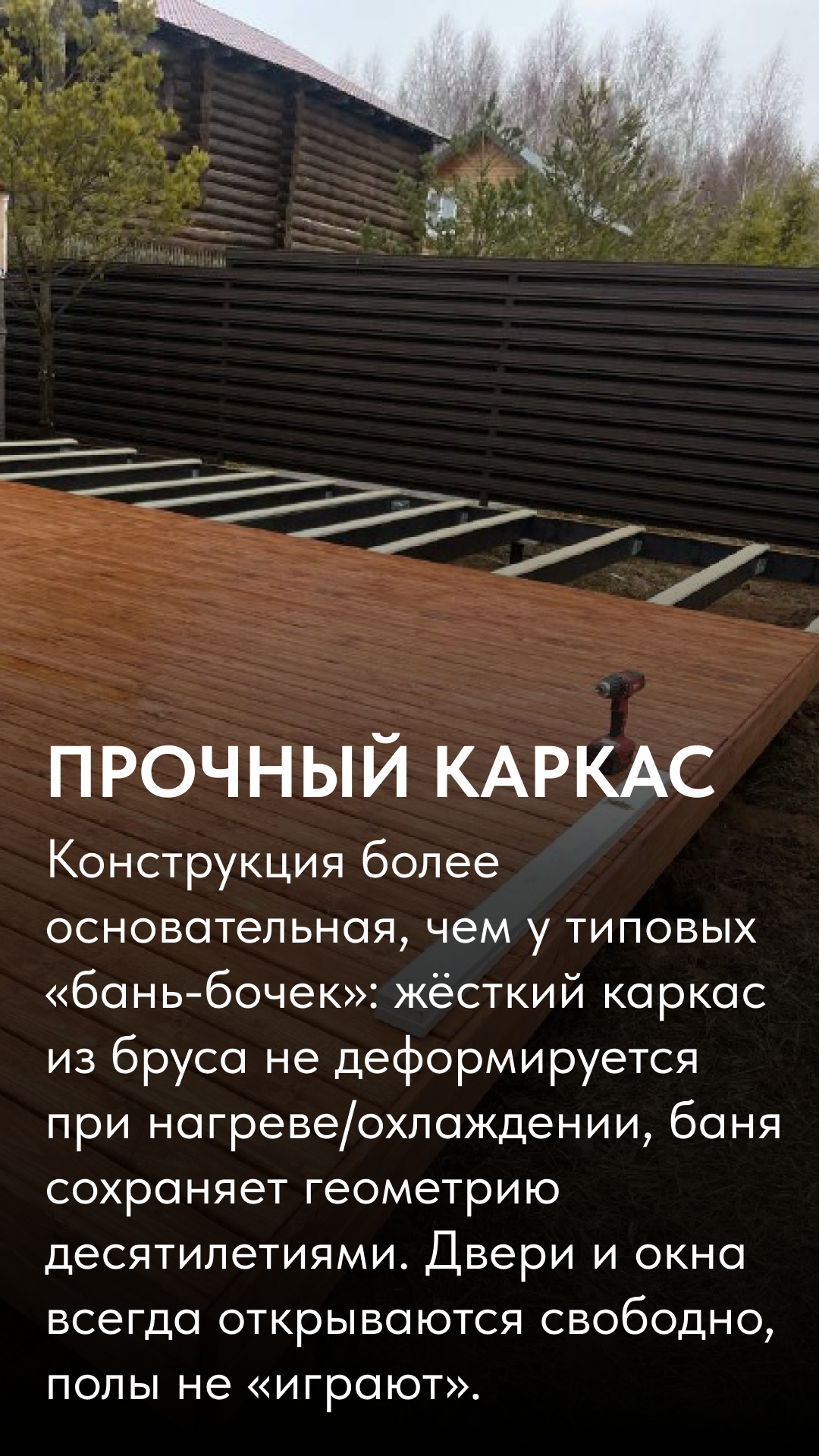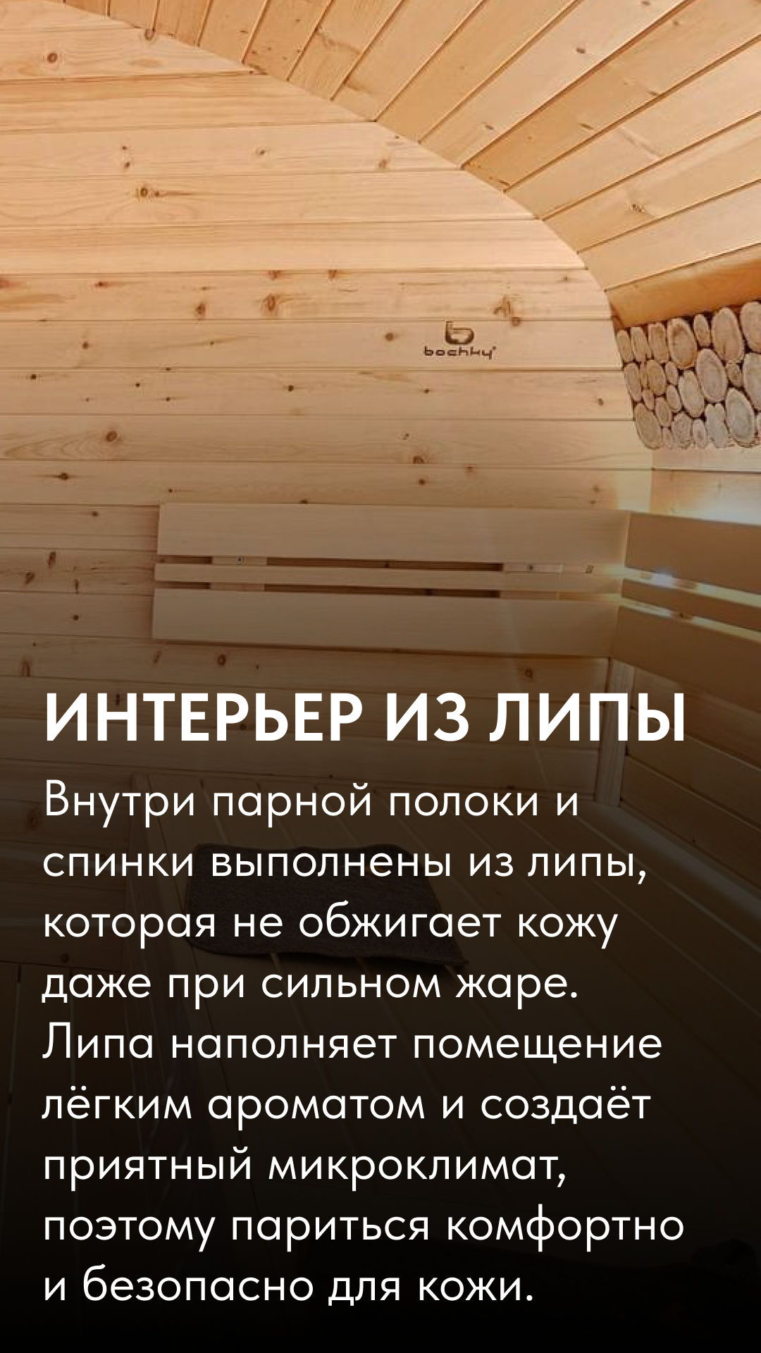 Мы не просто бренд — мы производственная сила: два собственных деревообрабатывающих завода и отдельное производство, где рождаются бани Bochky®.